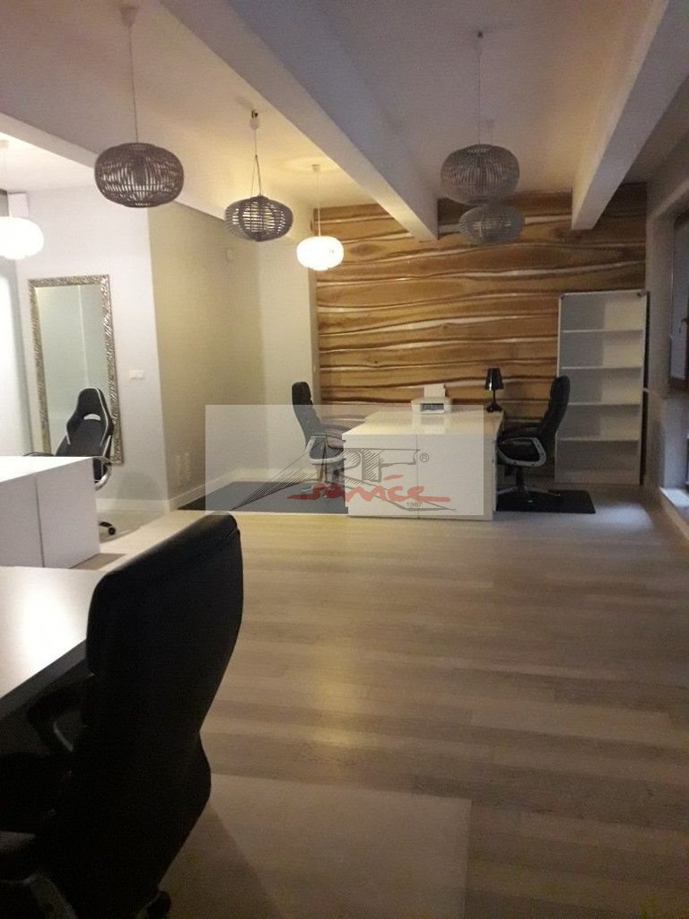 Doskonała lokalizacja w centrum Mokotowa z dobrą komunikacją, metro Wilanowska. Nowy budynek z windą, domofon. Lokal na parterze na cele biurowe. W sąsiedztwie znajdą Państwo ambasady i luksusowe wille. Pracownicy z pewnością będą zadowoleni z lokalizacji, przez łatwy dostęp do autobusów, tramwajów oraz 2 stacji metra (3 minuty spacerkiem). Lokal urządzony został na własne cele w wysokim standardzie. Może w nim pracować do 18-20 osób. Lokal jest w pełni urządzony - możemy jednak część mebli usunąć lub zamienić. W skład lokalu wchodzą 1. Open Space 8-10(12) osób, 2. Mały Gabinet 2 osoby, 3. Duży Gabinet 4 osoby, 4. Pokój Konferencyjny lub Gabinet (4 osoby), 5. Korytarz z wnęką recepcyjną (1 osoba), 6. 2 łazienki (w jednej znajduje się prysznic), 7. Kuchnia z wnęką jadalnianą, 8. Garderoba, 9. Pomieszczenie typu pakamera na dokumenty