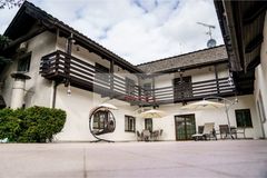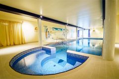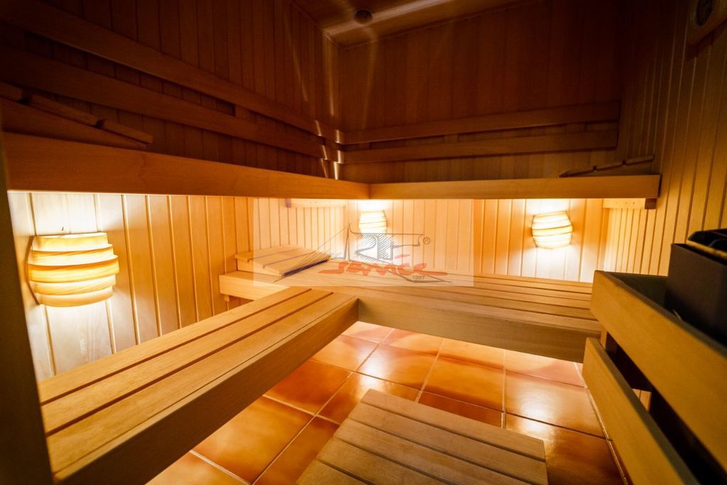 Dom posiada 4 kondygnacje przyziemie, parter, piętro oraz strych (nie liczony w powierzchni). Pierwsze piętro to część ściśle prywatna. Tu znajdują się m.in. 3 ogromne sypialnie (jedna z prywatną łazienką oraz garderobą), salon kąpielowy i pokój gościnny. Wszystkie sypialnie posiadają wykładziny, a łazienki mają podgrzewane podłogi. Pokoje połączone są również ciągiem balkonowym w typie krużganka, znajdującego się nad tarasem. Parter jest przestrzenią niezwykle reprezentacyjną. Po wejściu do domu, przechodząc przez hall wchodzimy do dwóch ogromnych salonów (90 m2) połączonych ze sobą w amfiladzie. Obok znajduje się obszerna kuchnia z jadalnią i spiżarnią (31 m2). Na parterze znajduje się również łazienka, pokój gościnny oraz niezwykle duży gabinet/biblioteka (55 m2). Podłogi na tym piętrze są drewniane (dąb, bambus) i marmurowe. Podłogi kamienne są podgrzewane. Wysokość pomieszczeń parteru to 292 i 335 cm. Dom ma układ litery "U", więc z obu salonów czy hallu można wyjść na przestronny taras-patio. Można tam usiąść, napić się kawy i podziwiać piękny ogród w niezakłóconej, intymnej atmosferze. Wielkość tarasu (ok 150 m2) pozwala na wygodne urządzanie dużych przyjęć plenerowych - kamienne szerokie schody prowadzą do głównej części ogrodu. Centralnie pod trasem został umiejscowiony nowoczesny, duży basen o wymiarach 12.5 na 4 m. Hala basenowa jest klimatyzowana i wentylowana za pomocą profesjonalnej centrali klimatyzacyjnej Menerga. Woda jest niezależnie podgrzewana, a w pomieszczeniu panuje zadana temperatura i wilgotność. Z basenu można wyjść bezpośrednio do ogrodu. Obok basenu znajduje się sala kinowa z nagłośnieniem Dolby Atmos, siłownia, a dalej dwie sauny- parowa i sucha wraz z prysznicem. Na tym poziomie znajduje się również duża pralnia, wc, natrysk, pomieszczenia gospodarcze i techniczne Dom posiada również garaż z dwoma bramami, w którym bez problemu zmieszczą się 2 duże limuzyny lub vany.W tylnej części dom posiada osobne mieszkanie - służbówkę z niezależnym wejściem, posiadające pokój, kuchnię i łazienkę. Niezwykła zaletą rezydencji jest lokalizacja. W najbliższej okolicy znajdują się wszelkie udogodnienia. Nieruchomość posiada KW oraz jedynego, prywatnego właściciela. Istnieje MPZP. Brak jakichkolwiek wad prawnych, obciążeń lub służebności. Teren jest oznaczony symbolem 7.4 MN(U).