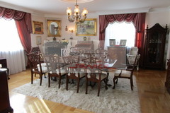 Prestiżowa lokalizacja, elegancka rezydencja dla wymagających. Reprezentacyjne wejście, eleganckie wnętrza, piękny ogród, duży, słoneczny taras od południa w marmurach z markizą. Zielony ogród, wysokie tuje dają intymność, osłaniają działkę. Salon przestronny, podłoga marmurowa, przejście do jadalni, kuchnia z drugą jadalnią, łazienka w marmurach wc, w holu szafy ubraniowe z lustrami. Schody na górę dębowe. Wyżej pokoje 3 sypialnie, balkony, łazienki z wanną, 2-wie umywalki duże lustra, okno, kabina prysznicowa, wc, bidet. Podpiwniczenie użytkowe. Pokój dla gosposi, łazienka, kuchnia, pralnia, suszarnia, pomieszczenia gospodarcze. Garaż na 2 samochody. Plus parkowanie przed wjazdem do garażu, plus 4 miejsca do parkowania przed domem. Polecam więcej informacji i ofert na Naszej stronie www,ARTSERVICE.waw.pl a nie publikowane w net wysyłam na maila zapraszam.