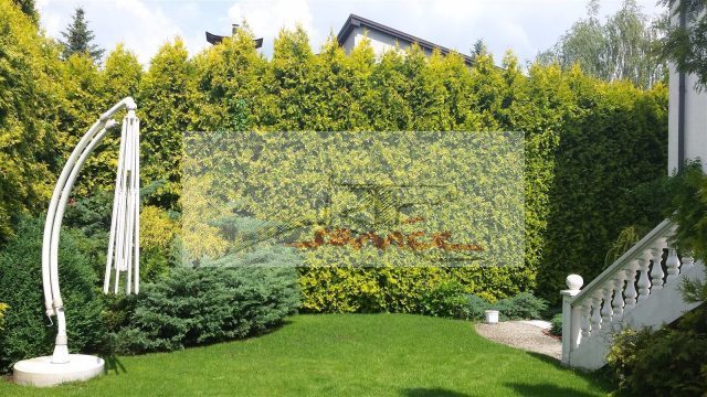 Prestiżowa lokalizacja, elegancka rezydencja dla wymagających. Reprezentacyjne wejście, eleganckie wnętrza, piękny ogród, duży, słoneczny taras od południa w marmurach z markizą. Zielony ogród, wysokie tuje dają intymność, osłaniają działkę. Salon przestronny, podłoga marmurowa, przejście do jadalni, kuchnia z drugą jadalnią, łazienka w marmurach wc, w holu szafy ubraniowe z lustrami. Schody na górę dębowe. Wyżej pokoje 3 sypialnie, balkony, łazienki z wanną, 2-wie umywalki duże lustra, okno, kabina prysznicowa, wc, bidet. Podpiwniczenie użytkowe. Pokój dla gosposi, łazienka, kuchnia, pralnia, suszarnia, pomieszczenia gospodarcze. Garaż na 2 samochody. Plus parkowanie przed wjazdem do garażu, plus 4 miejsca do parkowania przed domem. Polecam więcej informacji i ofert na Naszej stronie www,ARTSERVICE.waw.pl a nie publikowane w net wysyłam na maila zapraszam.