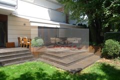 Prestiżowa lokalizacja na Górnym Mokotowie, boczna cicha uliczka od Racławickiej z dobrą komunikacją. Sklepy, restauracje, kawiarenki, usługi. Nowoczesne osiedle domków jednorodzinnych z ochroną. Wykończenie domu podłoga i schody - deski dębowe, szafy wnękowe drewniane, drewniane obudowy kaloryferów oraz listwy przypodłogowe, kuchnia - drewniana, wyposażenie miele + siemens łazienki - armatura villeroy&boch i zucchetti. Salon z kominkiem - 33m2 (okablowanie antena satelitarna - możliwość podłączenia każdego dekodera międzynarodowego, oraz kina domowego). Jadalnia - 14 m2, kuchnia (podłoga podgrzewana) 10 m2, spiżarnia (polki)- 1m2, gabinet - 13 m2, garaż - 30 m2, wc - 3 m2, hall - 10 m2, ogród + taras ok. 30m2. Piętro I Sypialnia główna (klimatyzacja) - 20 m2 z łazienka (podłoga podgrzewana) i garderobą + taras 37m2, Sypialnia 1 - 15 m2 z garderoba 3,55 m2, Sypialnia 2 - 17 m2 łazienka - 4,5 m2, pralnia 3 m2. Ogród zaprojektowany i całkowicie wykonany. Nawodnienie automatyczne. Oświetlenie ogrodu. Taras - drewno egzotyczne. Meble ogrodowe - 2 kanapy drewniane z poduszkami + stolik kawowy oraz stół rozkładany drewniany + 4 fotele drewniane z poduszkami. Markizy elektryczne somfy na tarasie dól + góra. Rolety elektryczne w oknach somfy. System alarmowy oraz videofon. Umowa na firmę oraz u Notariusza cd. Prezentacja nieruchomości wyłącznie przez Art-Service Real Estate nieruchomości zapraszam.