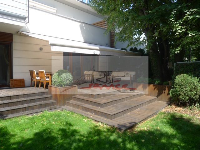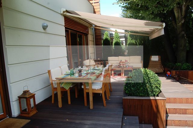 Prestiżowa lokalizacja na Górnym Mokotowie, boczna cicha uliczka od Racławickiej z dobrą komunikacją. Sklepy, restauracje, kawiarenki, usługi. Nowoczesne osiedle domków jednorodzinnych z ochroną. Wykończenie domu podłoga i schody - deski dębowe, szafy wnękowe drewniane, drewniane obudowy kaloryferów oraz listwy przypodłogowe, kuchnia - drewniana, wyposażenie miele + siemens łazienki - armatura villeroy&boch i zucchetti. Salon z kominkiem - 33m2 (okablowanie antena satelitarna - możliwość podłączenia każdego dekodera międzynarodowego, oraz kina domowego). Jadalnia - 14 m2, kuchnia (podłoga podgrzewana) 10 m2, spiżarnia (polki)- 1m2, gabinet - 13 m2, garaż - 30 m2, wc - 3 m2, hall - 10 m2, ogród + taras ok. 30m2. Piętro I Sypialnia główna (klimatyzacja) - 20 m2 z łazienka (podłoga podgrzewana) i garderobą + taras 37m2, Sypialnia 1 - 15 m2 z garderoba 3,55 m2, Sypialnia 2 - 17 m2 łazienka - 4,5 m2, pralnia 3 m2. Ogród zaprojektowany i całkowicie wykonany. Nawodnienie automatyczne. Oświetlenie ogrodu. Taras - drewno egzotyczne. Meble ogrodowe - 2 kanapy drewniane z poduszkami + stolik kawowy oraz stół rozkładany drewniany + 4 fotele drewniane z poduszkami. Markizy elektryczne somfy na tarasie dól + góra. Rolety elektryczne w oknach somfy. System alarmowy oraz videofon. Umowa na firmę oraz u Notariusza cd. Prezentacja nieruchomości wyłącznie przez Art-Service Real Estate nieruchomości zapraszam.