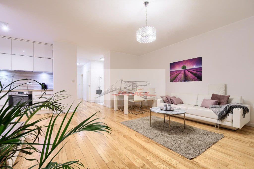 Mieszkanie składa się z przestronnego salonu z aneksem kuchennym- ok 30m2, w kuchni płyta grzewcza, piekarnik, zmywarka, express do kawy Nespresso. Dwie sypialnie ok 13m2 ( szafa garderobiana i komoda), oraz ok 11 m2 (podwójna komoda), łazienka 6m2 (wanna+deszczownica), oddzielne WC , garderoba ok 3m2( szafa, pralka, żelazko, odkurzacz, suszarka), w przedpokoju szafa w zabudowie. Mieszkania posiada balkon 7m2. Do mieszkania przynależy miejsce w garażu podziemnym na poziomie -1, bardzo blisko klatki schodowej. Cena 7000 zł + czynsz administracyjny 1500 zł+energia i rozliczenie mediów wg. liczników zużycia. Prezentacja nieruchomości wyłącznie przez Art-Service Real Estate nieruchomości zapraszam.