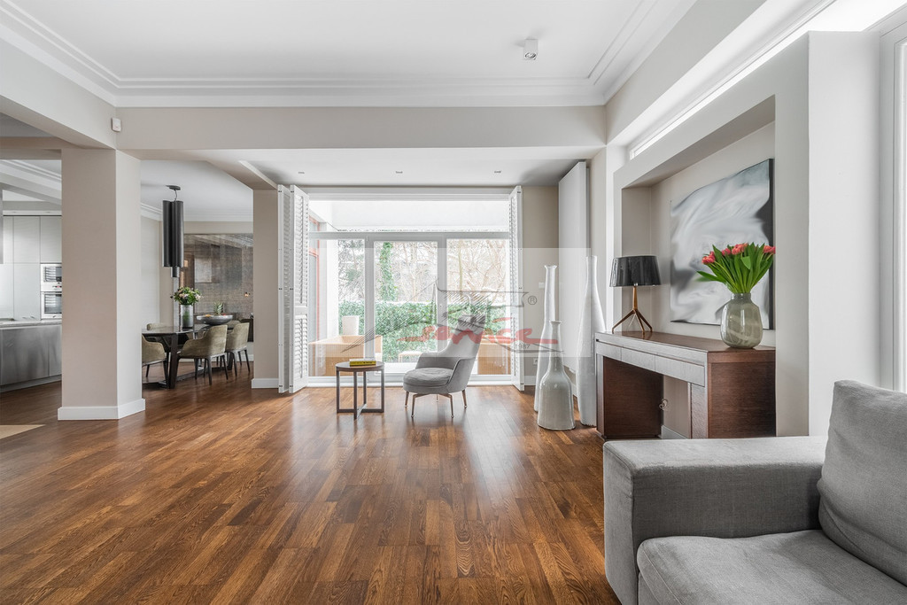 Prestiżowa lokalizacja w Mokotowie, piękna nowa rezydencja, nowoczesne wnętrza, doskonała dla Ambasadora, wymagających klientów. Okolica cicha willowa z piękną zielenią. Dobra infrastruktura, sklepy, centrum handlowe Sadyba Best Mall. W pobliżu różne szkoły, przedszkola. Nie daleko Pałac w Wilanowie. Przestronne wnętrza, wysokość 3,20mh, duże panoramiczne okna. Kuchnia z nowoczesnym AGD, łazienki wyposażone, nowoczesne w wysokiej jakości urządzenia i materiały. Podłogi z drewna eleganckie, doskonałej jakości.