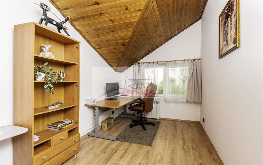 W piwnicy właściciele urządzili gabinet do pracy, pralnię z kotłownią, suszarnię oraz wygodne pomieszczenia magazynowe. W bryle budynku znajduje się garaż, a na posesji dodatkowe miejsce parkingowe.