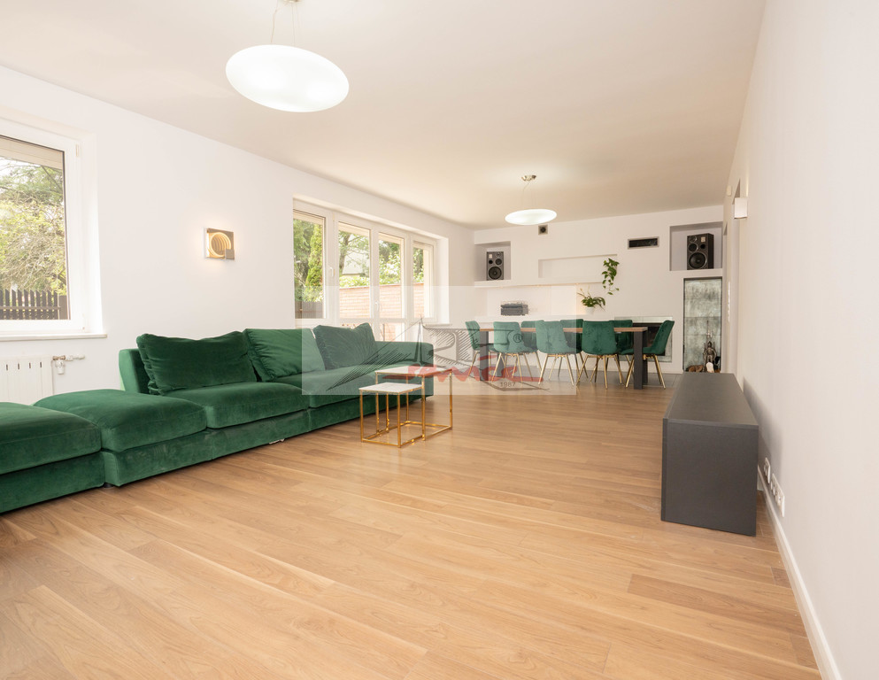 Piękna lokalizacja z widokiem na Park. Blisko centrum handlowe Sadyba Beat Mall, dobra komunikacja, 6km do centrum. Doskonały do zamieszkania i rekreacji, blisko jeziorka i plaży oraz ośrodka tenisowego. Nowoczesny dom, elegancko wykończony. Duży salon z kominkiem wyjście do ogrodu. Trzy piętra i obszerna piwnica, trzy łazienki i WC. Centralnie sterowane rolety i ogrzewanie. Nowa sauna i klimatyzacja (7 jednostek), kominek, garaż, pianino, woda pitna z kranu. Garaż plus miejsca parkingowe na podjeździe.