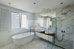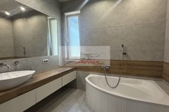Piętro - trzy sypialnie, w tym jedna główna z garderobą, własną łazienką i wyjściem na taras, - druga łazienka z wanną i prysznicem.