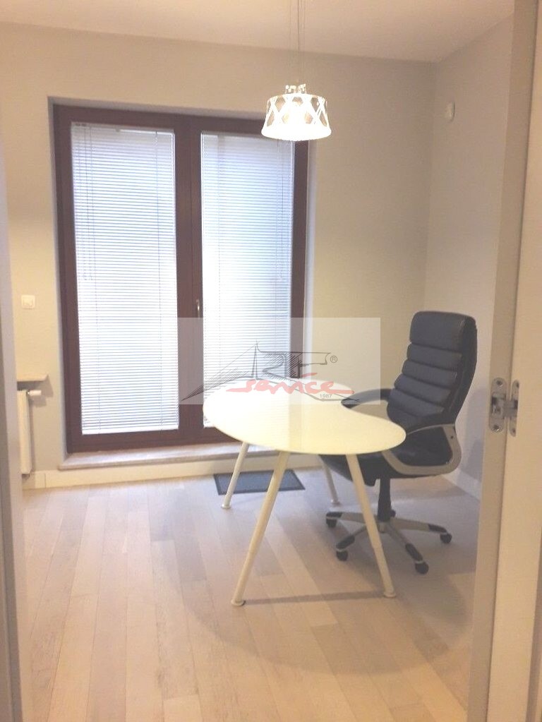 Doskonała lokalizacja w centrum Mokotowa z dobrą komunikacją, metro Wilanowska. Nowy budynek z windą, domofon. Lokal na parterze na cele biurowe. W sąsiedztwie znajdą Państwo ambasady i luksusowe wille. Pracownicy z pewnością będą zadowoleni z lokalizacji, przez łatwy dostęp do autobusów, tramwajów oraz 2 stacji metra (3 minuty spacerkiem). Lokal urządzony został na własne cele w wysokim standardzie. Może w nim pracować do 18-20 osób. Lokal jest w pełni urządzony - możemy jednak część mebli usunąć lub zamienić. W skład lokalu wchodzą 1. Open Space 8-10(12) osób, 2. Mały Gabinet 2 osoby, 3. Duży Gabinet 4 osoby, 4. Pokój Konferencyjny lub Gabinet (4 osoby), 5. Korytarz z wnęką recepcyjną (1 osoba), 6. 2 łazienki (w jednej znajduje się prysznic), 7. Kuchnia z wnęką jadalnianą, 8. Garderoba, 9. Pomieszczenie typu pakamera na dokumenty