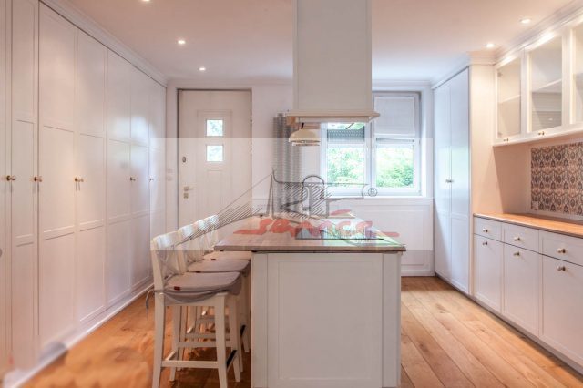 Doskonała lokalizacja w cichej, willowej części Wilanowa, to część która pozwoli w ciszy i spokoju odpocząć od zgiełku miasta, a jednocześnie zapewnia łatwy dojazd do centrum i dostęp do pełnej infrastruktury miejskiej. Segment wnętrze nawiązuje kolorem i wykończeniem do stylu Hampton. Już od wejścia wita nas serce domu, czyli kuchnia z dużą i funkcjonalna wyspa. Prawa ściana to ciąg szaf z wejściem do garażu, który w chwili obecnej pełni role studia nagrań (wnętrze jest całkowicie wyciszone, może pełnić funkcję ustronnego gabinetu). Z kuchni płynnie przechodzimy do salonu połączonego z jadalnią. Dominującym kolorem tej otwartej, ponad 70-cio metrowej przestrzeni jest biel, przełamana ciepłym odcieniem drewnianej podłogi. W salonie uwagę przykuwa kominek oraz duże i wygodne siedzisko pod oknem. Z salonu wyjście do w pełni zagospodarowanego ogródka, a właściwie dużego, przytulnego tarasu, który w okresie wiosenno-letnim znakomicie powiększa przestrzeń mieszkalna. Łazienka dla gości to jedyne pomieszczenie na dolnej kondygnacji gdzie dominuje czerń. Na pierwszym piętrze biel miesza się z innymi kolorami, miedzy innymi szarością. Główna sypialnia posiada własną łazienkę z wanną. Z korytarza wejście do łazienki z prysznicem oraz dwóch, dużych i ustawnych sypialni. Jedna z nich w chwili obecnej wykończona jest na potrzeby nastolatka. Posiada dużą, ponadwymiarową szafę, oraz wyjście na mały balkonik. Na kolejnej kondygnacji dominuje biel. Znajduje się tu duża, oświetlona oknami dachowymi pracownia, oraz dwie, widne, doskonale nadające się na kolejne pokoje, garderoby. Na tym samym piętrze znajduje się również przestronna pralnia z suszarnią. Na podjeździe zaparkują 3 samochody. Całe wnętrze to jasna i unikalna przestrzeń, połączenie stylu i funkcjonalności, zakładające maksimum wygody. Rozkład Parter salon, jadalnia, kuchnia, toaleta, studio nagrań (gabinet), taras