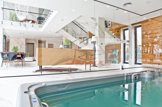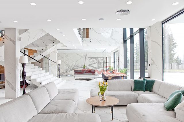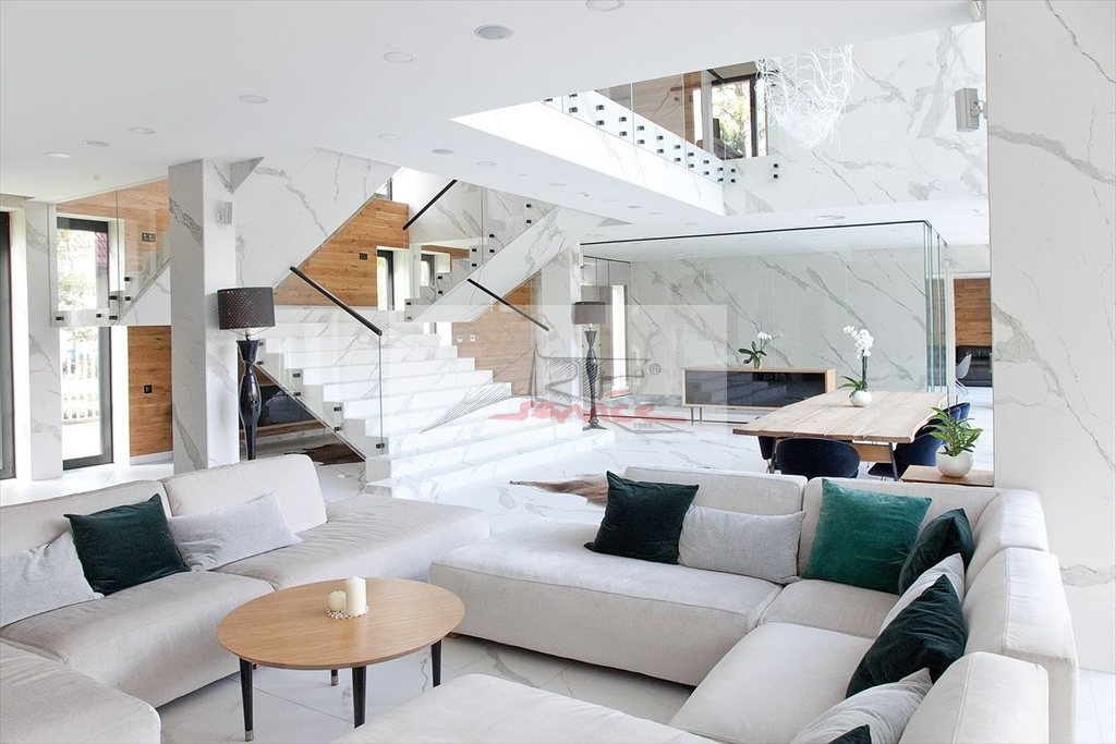 Doskonała lokalizacja na Ursynowie, piękne, ciche położenie. Nowoczesny dom dla wymagających, nowoczesne przestronne wnętrza, luksusowo wyposażony z basenem. Szybki dostęp do lotniska, blisko sklepy, centra handlowe, kawiarenki, restauracje, lasek. Nieruchomość położona jest na ponad hektarowej działce z starodrzewem i naturalnym stawem. Na parterze znajduje się piękny hol prowadzący do salonu z przeszkleniem, prezentującym ogród. Salon posiada strefę wypoczynkową z dużymi kanapami i kominkiem, połączona z dużą jadalnią. Salon częściowo posiada antresolę, gdzie okna sięgają do wysokości ok 7 m. Oddzielne pomieszczenie stanowi kuchnia wyposażona w najwyższej klasy sprzęty AGD. Przy kuchni głównej znajduje się kuchnia gościnna, który może służyć do obsługi gości, jak również mieszkańców. Centrum salonu stanowią niezwykłe dwustronne marmurowe schody, prowadzące do stref prywatnych. Salon posiada odseparowaną poprzez ścianę ze szkła strefę basenu. Basen jest wyposażony w przeciwprądy i hydromasaże, stanowi niezwykłe miejsce relaksu z widokiem na ogród. Kolejnym pomieszczeniem jest pokój telewizyjny, który jest specjalnie wyciszony, dzięki czemu nawet głośne gry i zabawy nie zakłócą ciszy w reszcie domu Na parterze znajduje się również sypialnia dla gości z łazienką. Druga łazienka znajduje się przy holu wejściowym. Na parterze znajdują się także pralnia, kotłownia, pomieszczenie techniczne. Garaż pomieści 3 duże samochody. Na pierwszym piętrze, po lewej stronie mamy 3 pokoje służące jako sypialnie. Z każdej sypialni możemy wyjść na wspólny obszerny taras. Po przeciwnej stronie jest duża siłownia wysunięta do ogrodu, w pełni wyposażona w sprzęty. Obok siłowni znajduje się sauna. Sypialnia główna połączona jest z łazienką. W sypialni głównej znajduje się kominek. Do sypialni przynależy olbrzymia garderoba. Z sypialni można wyjść na drugi, duży taras. Na piętrze znajduje się także gabinet oraz druga łazienka. Instalacja cieplna nieruchomości jest napędzana przez pompę ciepła NIBE. Zainstalowano również wentylację mechaniczną. Klimatyzacja w pomieszczeniach jest zapewniona przez klimakonwektory - system zdolny do chłodzenia i ogrzewania. Klimatyzacja jest sterowana indywidualnie dla każdego pomieszczenia (panele ścienne / inteligentny system zarządzania domem). Inteligentny system zarządzania domem KNX kontroluje również oświetlenie, zasłony i temperaturę. Oprócz paneli ściennych domem za pomocą urządzeń przenośnych - telefonów, tabletów i przeglądarek internetowych. Cały dom został wyposażony w ogrzewanie podłogowe. Dzięki pompie ciepła i panelom fotowoltaicznym koszty utrzymania domu są bardzo niskie. Ponadto nieruchomość została wyposażony w indywidualny system nawilżania powietrza, co znacznie poprawia komfort życia każdego mieszkańca. Zainstalowano także centralny odkurzacz. Zapraszam do oglądania. Polecam więcej informacji i ofert na Naszej stronie www,ARTSERVICE,waw.pl a nie publikowane w net wysyłam na maila zapraszam.