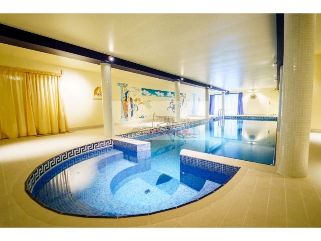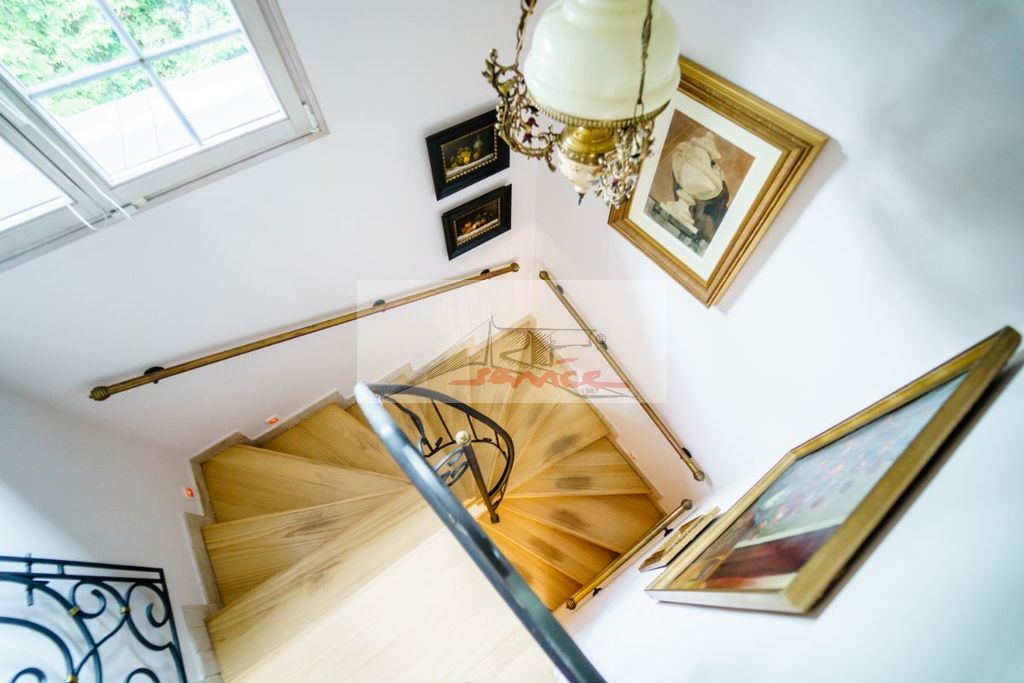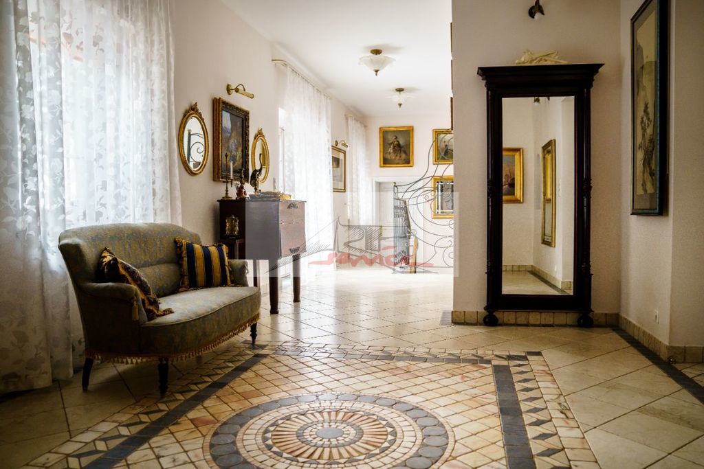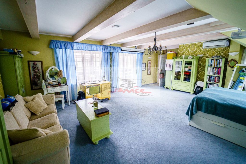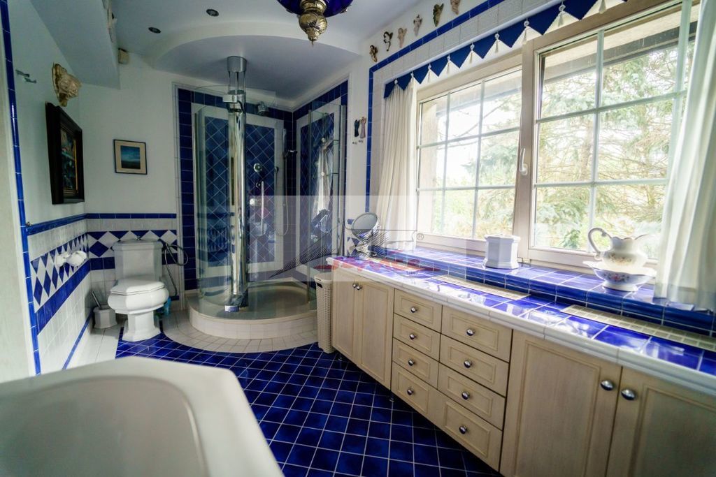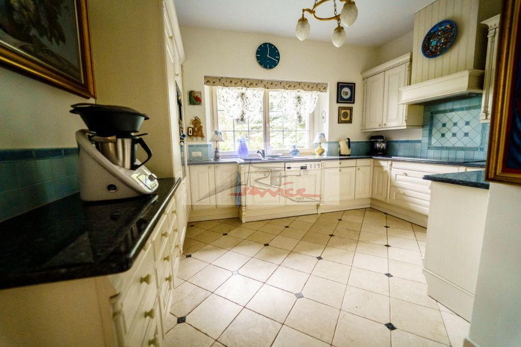 Dom posiada 4 kondygnacje przyziemie, parter, piętro oraz strych (nie liczony w powierzchni). Pierwsze piętro to część ściśle prywatna. Tu znajdują się m.in. 3 ogromne sypialnie (jedna z prywatną łazienką oraz garderobą), salon kąpielowy i pokój gościnny. Wszystkie sypialnie posiadają wykładziny, a łazienki mają podgrzewane podłogi. Pokoje połączone są również ciągiem balkonowym w typie krużganka, znajdującego się nad tarasem. Parter jest przestrzenią niezwykle reprezentacyjną. Po wejściu do domu, przechodząc przez hall wchodzimy do dwóch ogromnych salonów (90 m2) połączonych ze sobą w amfiladzie. Obok znajduje się obszerna kuchnia z jadalnią i spiżarnią (31 m2). Na parterze znajduje się również łazienka, pokój gościnny oraz niezwykle duży gabinet/biblioteka (55 m2). Podłogi na tym piętrze są drewniane (dąb, bambus) i marmurowe. Podłogi kamienne są podgrzewane. Wysokość pomieszczeń parteru to 292 i 335 cm. Dom ma układ litery "U", więc z obu salonów czy hallu można wyjść na przestronny taras-patio. Można tam usiąść, napić się kawy i podziwiać piękny ogród w niezakłóconej, intymnej atmosferze. Wielkość tarasu (ok 150 m2) pozwala na wygodne urządzanie dużych przyjęć plenerowych - kamienne szerokie schody prowadzą do głównej części ogrodu. Centralnie pod trasem został umiejscowiony nowoczesny, duży basen o wymiarach 12.5 na 4 m. Hala basenowa jest klimatyzowana i wentylowana za pomocą profesjonalnej centrali klimatyzacyjnej Menerga. Woda jest niezależnie podgrzewana, a w pomieszczeniu panuje zadana temperatura i wilgotność. Z basenu można wyjść bezpośrednio do ogrodu. Obok basenu znajduje się sala kinowa z nagłośnieniem Dolby Atmos, siłownia, a dalej dwie sauny- parowa i sucha wraz z prysznicem. Na tym poziomie znajduje się również duża pralnia, wc, natrysk, pomieszczenia gospodarcze i techniczne Dom posiada również garaż z dwoma bramami, w którym bez problemu zmieszczą się 2 duże limuzyny lub vany.W tylnej części dom posiada osobne mieszkanie - służbówkę z niezależnym wejściem, posiadające pokój, kuchnię i łazienkę. Niezwykła zaletą rezydencji jest lokalizacja. W najbliższej okolicy znajdują się wszelkie udogodnienia. Nieruchomość posiada KW oraz jedynego, prywatnego właściciela. Istnieje MPZP. Brak jakichkolwiek wad prawnych, obciążeń lub służebności. Teren jest oznaczony symbolem 7.4 MN(U).