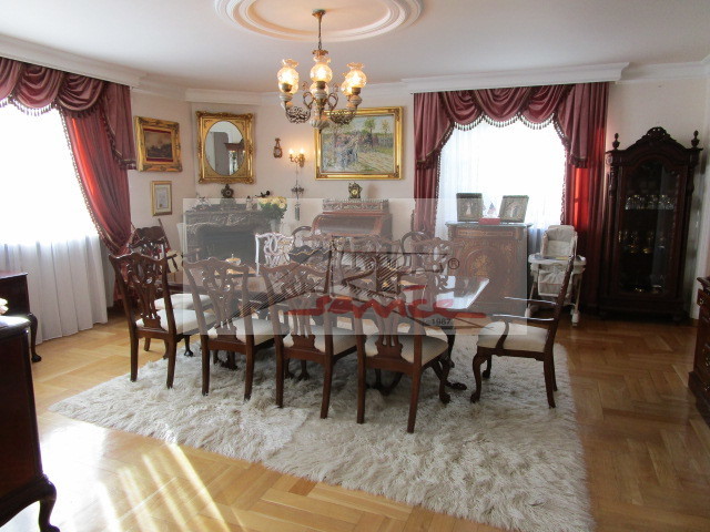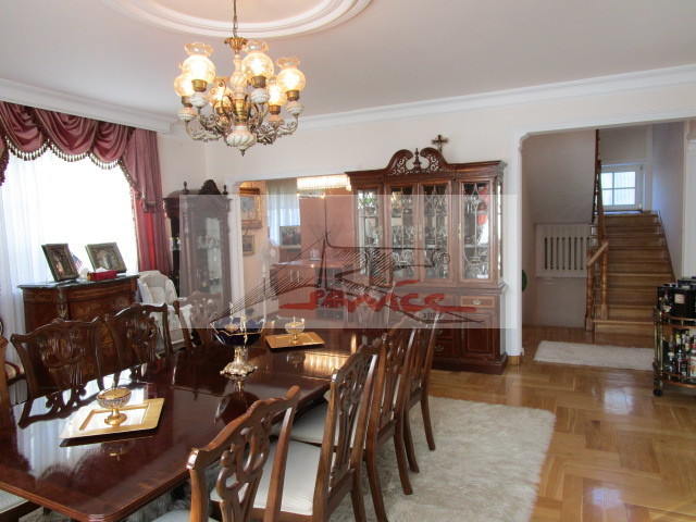 Prestiżowa lokalizacja, elegancka rezydencja dla wymagających. Reprezentacyjne wejście, eleganckie wnętrza, piękny ogród, duży, słoneczny taras od południa w marmurach z markizą. Zielony ogród, wysokie tuje dają intymność, osłaniają działkę. Salon przestronny, podłoga marmurowa, przejście do jadalni, kuchnia z drugą jadalnią, łazienka w marmurach wc, w holu szafy ubraniowe z lustrami. Schody na górę dębowe. Wyżej pokoje 3 sypialnie, balkony, łazienki z wanną, 2-wie umywalki duże lustra, okno, kabina prysznicowa, wc, bidet. Podpiwniczenie użytkowe. Pokój dla gosposi, łazienka, kuchnia, pralnia, suszarnia, pomieszczenia gospodarcze. Garaż na 2 samochody. Plus parkowanie przed wjazdem do garażu, plus 4 miejsca do parkowania przed domem. Polecam więcej informacji i ofert na Naszej stronie www,ARTSERVICE.waw.pl a nie publikowane w net wysyłam na maila zapraszam.