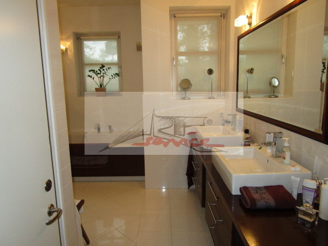 Ekskluzywny i nowoczesny dom. Doskonała lokalizacja dla wymagających, oaza ciszy i rekreacji, świeże powietrze, klimatyczna okolica doskonałe połączenia z centrum, blisko trasa S8 szybkiego ruchu, centra handlowe, sklepy, autobus do metra Ks. Janusza i Olbrachta a nie długo będzie stacja przy pętli Górczewska i Lazurowa. Dom pięknie położony, nowy i nowoczesny, wykonany z materiałów wysokiej jakości, działka otoczona zielenią, kwiatami z pięknym widokiem. Eleganckie wnętrza, przestronny salon z kominkiem, wysokie okna doświetlają cały dom, kuchnia widna z nowoczesnym AGD, meble na zmówienie dopasowane do wnętrza i potrzeb. Na parterze mamy - pokój dzienny 41,6 m.kw - jadalnia 16,4 m.kw - kuchnia otwarta z oknem 12,4 m.kw - gabinet 12,7 m.kw - wc 2,4 m.kw - garderoba 4,6 m.kw - wiatrołap 7,7 m.kw - hall 22,1 m.kw - pomieszczenie gospodarcze 5,9 m.kw - pokój rekreacyjny/gabinet 11,8 m.kw - pomieszczenie gospodarcze 2,8 m.kw - pralnia 4,2 m.kw - garaż na 2 samochody automatyczna brama. Na górę prowadzą eleganckie schody, - pokój 16,9 m.kw - pokój 16,8 m.kw - komunikacja 16,1 m.kw - wc 2,6 m.kw - łazienka 7,3 m.kw - pokój 15 m.kw - pokój 18,1 m.kw - łazienka 16,2 m.kw - garderoba 6,4 m.kw. Podłoga z drewna merbau , kamienia marmury, ogrzewanie podłogowe pod kamieniem, grzejniki w podłodze gdzie jest drewno merbau, salon deska jesionowa na zamówienie bielona ekskluzywna jakość, okna mahoń, antywłamaniowe, alarm monitoring. Wysokość w salonie 330mh. Dobrze doświetlone wnętrza wysokie okna balkonowe. Wyposażenie kuchni Lodówka, Meble w zabudowie kuchennej, Mikrofalówka, Piekarnik, Płyta grzewcza elektryczna, Spiżarka, Zlewozmywak, Zmywarka, Wyposażenie łazienek Bidet, wanny, kabiny prysznicowe, podgrzewane podłogi, umywalki, WC, lustra, okna. Pralnia widna obok garażu pomieszczenie gospodarcze. Dom z alarmem, monitoringiem, plany przesyłam na życzenie. Polecam więcej informacji i ofert http//www.ARTSERVICE.waw.pl/ nie publikowanych w net wysyłam na maila zapraszam.