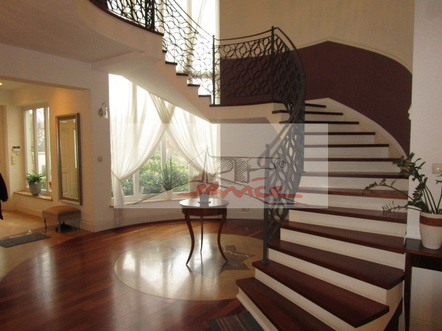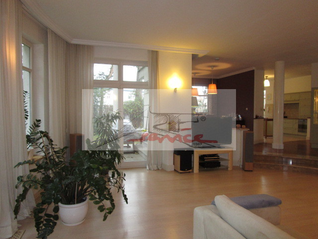 Ekskluzywny i nowoczesny dom. Doskonała lokalizacja dla wymagających, oaza ciszy i rekreacji, świeże powietrze, klimatyczna okolica doskonałe połączenia z centrum, blisko trasa S8 szybkiego ruchu, centra handlowe, sklepy, autobus do metra. Dom pięknie położony, nowy i nowoczesny, wykonany z materiałów wysokiej jakości, działka otoczona zielenią, kwiatami z pięknym widokiem. Eleganckie wnętrza, przestronny salon z kominkiem, wysokie okna doświetlają cały dom, kuchnia widna z nowoczesnym AGD, meble na zmówienie dopasowane do wnętrza i potrzeb. Na parterze mamy - pokój dzienny 41,6 m.kw - jadalnia 16,4 m.kw - kuchnia otwarta z oknem 12,4 m.kw - gabinet 12,7 m.kw - wc 2,4 m.kw - garderoba 4,6 m.kw - wiatrołap 7,7 m.kw - hall 22,1 m.kw - pomieszczenie gospodarcze 5,9 m.kw - pokój rekreacyjny/gabinet 11,8 m.kw - pomieszczenie gospodarcze 2,8 m.kw - pralnia 4,2 m.kw - garaż na 2 samochody automatyczna brama. Na górę prowadzą eleganckie schody, - pokój 16,9 m.kw - pokój 16,8 m.kw - komunikacja 16,1 m.kw - wc 2,6 m.kw - łazienka 7,3 m.kw - pokój 15 m.kw - pokój 18,1 m.kw - łazienka 16,2 m.kw - garderoba 6,4 m.kw. Podłoga z drewna merbau , kamienia marmury, ogrzewanie podłogowe pod kamieniem, grzejniki w podłodze gdzie jest drewno merbau, salon deska jesionowa na zamówienie bielona ekskluzywna jakość, okna mahoń, antywłamaniowe, alarm monitoring. Wysokość w salonie 330mh. Dobrze doświetlone wnętrza wysokie okna balkonowe. Wyposażenie kuchni Lodówka, Meble w zabudowie kuchennej, Mikrofalówka, Piekarnik, Płyta grzewcza elektryczna, Spiżarka, Zlewozmywak, Zmywarka, Wyposażenie łazienek Bidet, wanny, kabiny prysznicowe, podgrzewane podłogi, umywalki, WC, lustra, okna. Pralnia widna obok garażu pomieszczenie gospodarcze. Dom z alarmem, monitoringiem, plany przesyłam na życzenie. Prezentacja nieruchomości wyłącznie przez Art-Service Real Estate nieruchomości zapraszam.