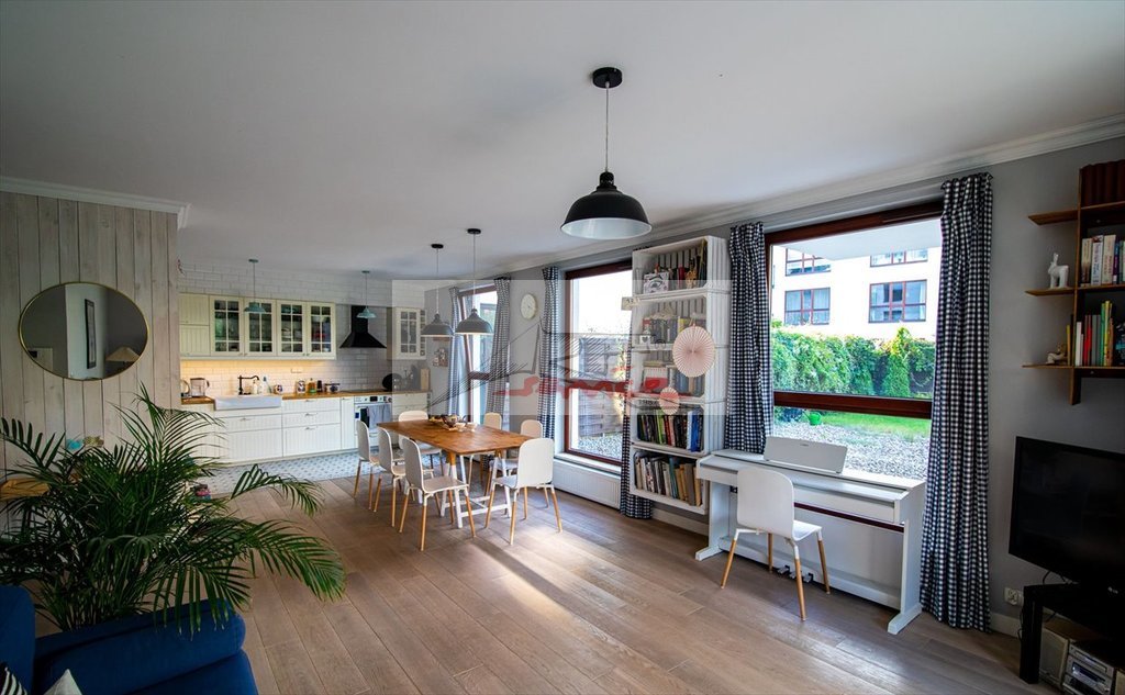 Doskonała lokalizacja w Miasteczku Wilanów niska zabudowa. Kawiarenki, sklepy, szkoły, usługi, restauracje. Eleganckie mieszkanie z pięknym tarasem i ogródkiem 300m2. Bardzo jasne, dzięki dużym oknom, a jednocześnie nie nagrzewa się, dzięki usytuowaniu na odpowiednią stronę świata. Apartament to- duży salon z aneksem kuchennym (50m2), - sypialnię z dużą szafą i łóżkiem małżeńskim (15m2), - pokój z łóżeczkiem dziecięcym (do ustalenia, czy będzie potrzebne) (15m2), - dwie łazienki (jedna z wanną, druga z prysznicem), - garderobę, - dwie duże szafy wnękowe w przedpokoju, - dwa miejsca garażowe, - ogród (300m2) z tarasem. Urządzone w stylu skandynawskim, bardzo domowe i klimatyczne, z dużym stołem, kanapą, elektronicznym pianinem. W ogrodzie o każdej porze dnia znajdzie się część nasłoneczniona oraz zacieniona. Wyposażenie ogrodu to meble ogrodowe, leżaki, hamak, grill gazowy, podlewanie ogrodowe. Do mieszkania należą dwa miejsca garażowe, usytuowane blisko wejścia do winy. Mieszkanie jest na parterze, jedyne mieszkanie w tej kondygnacji na klatce, w budynku 4-piętrowym. Na strzeżonym osiedlu, z antywłamaniowymi oknami, z kamerami, ochroniarzem, z zadbanym roślinnie patio, placem zabaw. Wynajem miesięczny to 9.000zł, w cenie - 7.650,-zł za wynajem, - 1.350,-zł czynsz administracyjny, - w cenie zaliczka za wodę, - Internet i telewizja kablowa, Dodatkowo płatny prąd wg licznika. Prezentacja nieruchomości wyłącznie przez Art-Service Real Estate nieruchomości zapraszam.