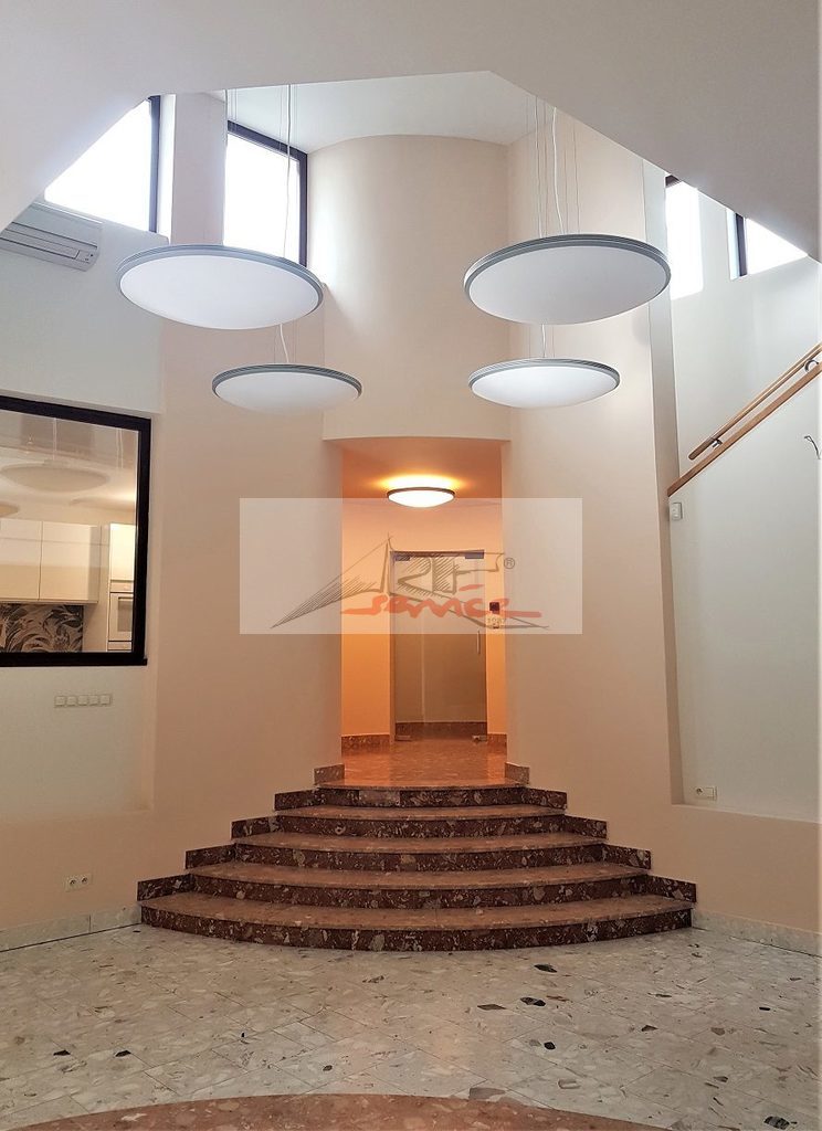 Parter wielki salon, o wysokości 2 pięter, bardzo jasny. Ma piękny, duży kominek oraz eleganckie lampy Fagerhulta o wyjątkowym kształcie. Kuchnia pięknie zagospodarowana, jadalnia/gabinet, pomieszczenie służbowe, toaleta i wyjątkowy hol. Z holu przechodzi się do podwójnego garażu. Salon 77m2, Jadalnia 20m2, Kuchnia 20m2, Hall 12m2, Garaż 39m2, Toaleta 8m2.