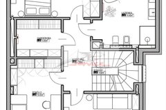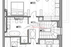 Poddasze użytkowe Sypialnia master (30m2) z wyjściem na taras (14m2) gabinet z przeszkleniem (antresola) lub garderoba (16,5m2). Łazienka (10,25m2), pomieszczenie gospodarcze pralnia i kotłownia, (7,65m2), hol. Razem 77,55m2.