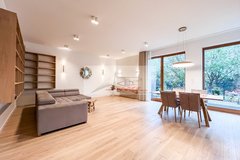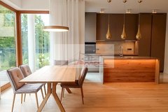 Doskonała lokalizacja kameralne osiedle z ochroną przy Rezerwacie Skarpa Ursynowska z pięknym widokiem . Dobra komunikacja metro Imielin. Ekologiczny i Energetycznie niezależny dom z bardzo niskimi kosztami energii. Dom wykończony w wysokim standardzie gotowy do zamieszkania. Panoramiczne okna zapewniają dobre doświetlenie pomieszczeń. Instalacja fotowoltaiczna na dachu oraz pompa ciepła - pozwolą znacznie ograniczyć opłaty za media. Parter Otwarta przestrzeń salon połączony z kuchnią i jadalnią (50m2) z wyjściem na ogród, WC, garderoba, spiżarnia, garaż na 1 auto. Razem 97m2.