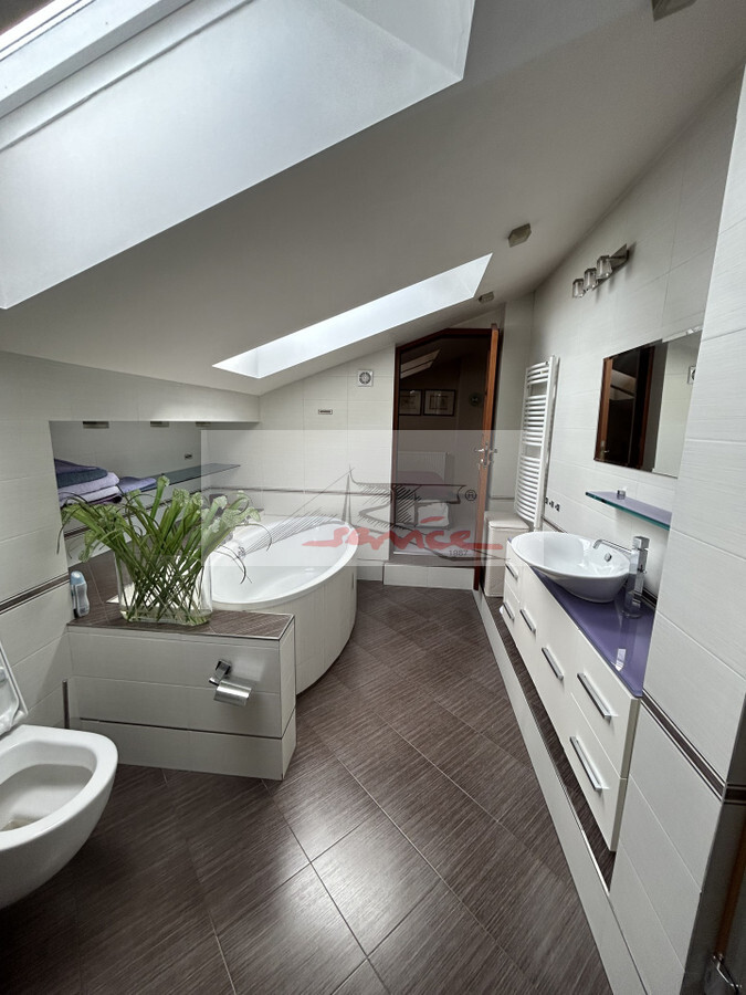 Doskonała lokalizacja w centrum a jednocześnie kameralne miejsce w otoczeniu zieleni. Apartamentowiec nowoczesny, dobra komunikacja, blisko metro Wilanowska, sklepy, kawiarenki, usługi. Mieszkanie o powierzchni 130 metrów kwadratowych z dużym tarasem i widokiem na Panoramę Miasta. Mieszkanie posiada dwa pełnowymiarowe poziomy. Na poziomie pierwszym znajduje się pokój dzienny połączony z jadalnią. Duże okna prowadzą na znakomity taras z rozległym widokiem na zieleń. Z pokoju dziennego dostępna jest osobna kuchnia oraz gabinet, który może również posłużyć za dodatkową sypialnię. Z holu wejściowego dostajemy się do osobnej garderoby oraz łazienki. Na piętrze znajduje się sypialnia główna połączona z łazienką oraz dodatkowa strefa do pracy. W mieszkaniu zaplanowano wiele szaf wnękowych i miejsc do przechowywania. Mieszkanie zostało zaplanowane z najwyższą dbałością o komfort i wygodę jego mieszkańców. W ramach wynajmu dostępne jest miejsce postojowe w garażu podziemnym, komórka lokatorska o powierzchni 4 mkw oraz przestrzeń do przechowywania rowerów. Czynsz administracyjny w cenie czynszu najmu, należy doliczyć zaliczkę na media w wysokości 600 zł. Nieruchomość otaczają wille jednorodzinne, ambasady, skwery i parki. Atmosfera sprzyja spacerom i wszelkiej aktywności fizycznej. Prezentacja nieruchomości wyłącznie przez Art-Service Real Estate Strategy Nieruchomości zapraszam.