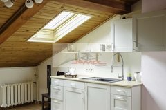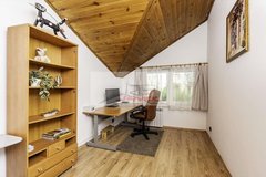 Na piętrze znajduje się prywatna strefa wypoczynkowa - cztery sypialnie, w tym jedna z balkonem, garderoba oraz łazienka z oknem. Użytkowe poddasze zaadaptowano na duży pokój rekreacyjny z aneksem kuchennym i łazienką oraz dodatkową sypialnię przestrzeń tę można podzielić na kolejne pokoje.