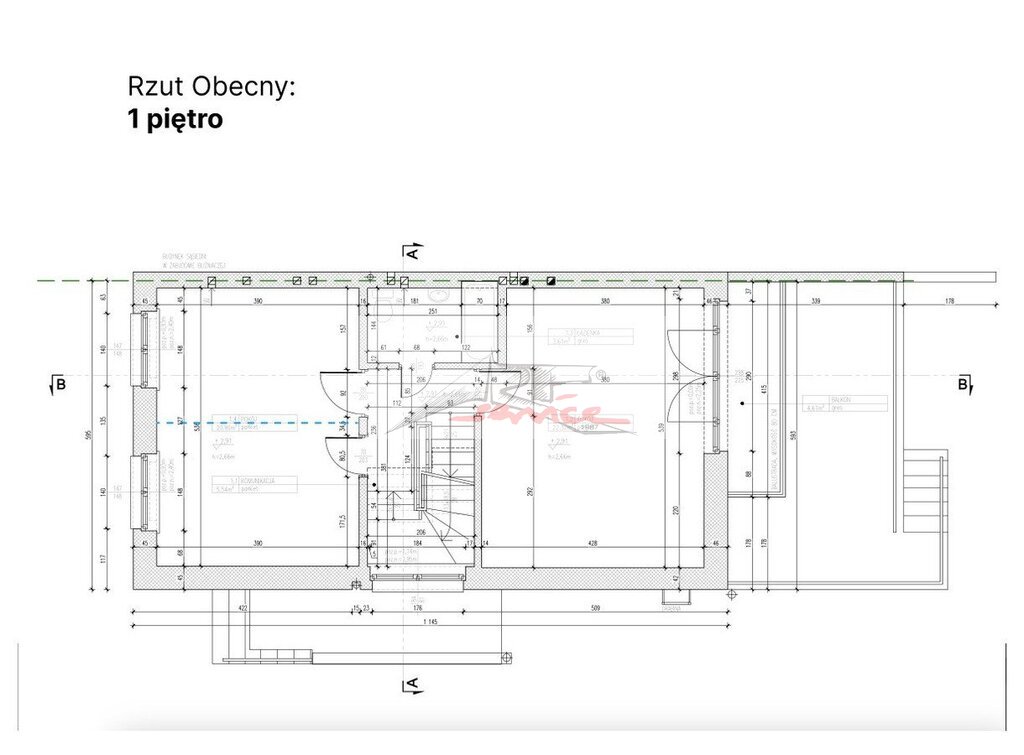 -1 piętro (53 m2) 2 duże pokoje (możliwość podziału), łazienka
