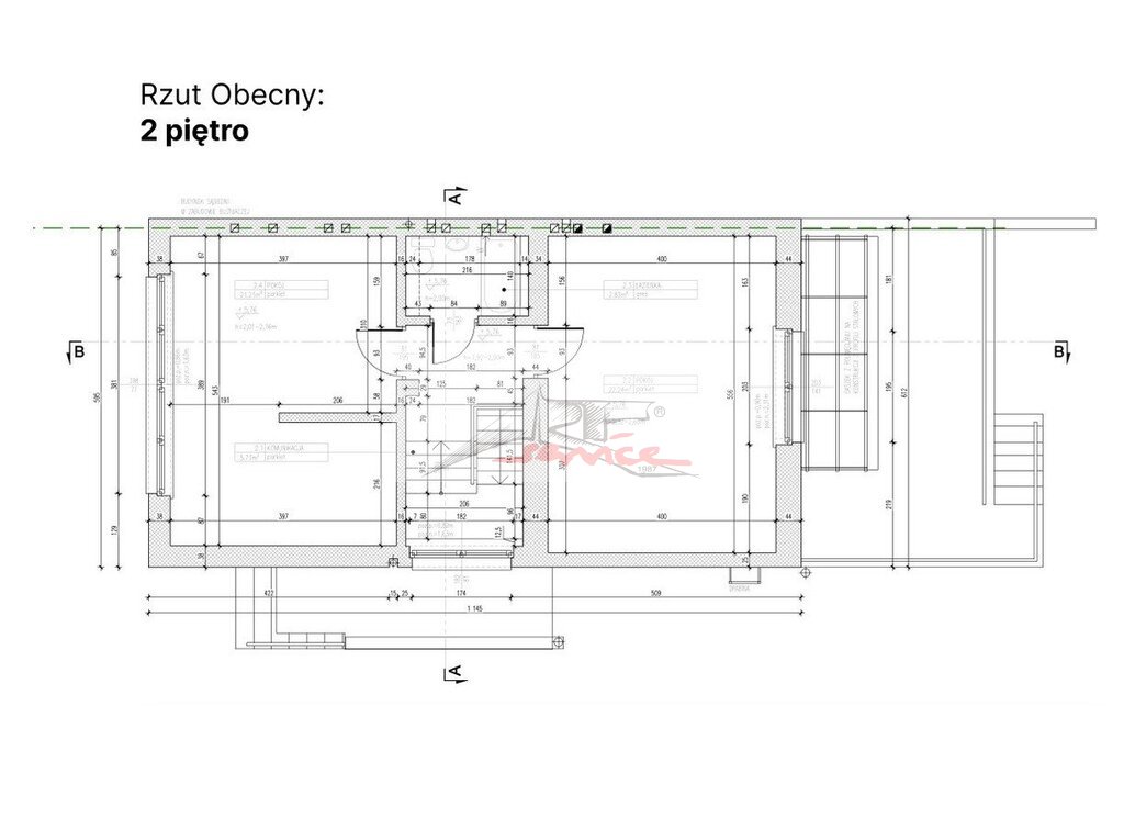 -2 piętro (52 m2) 2 duże pokoje (możliwość podziału), łazienka