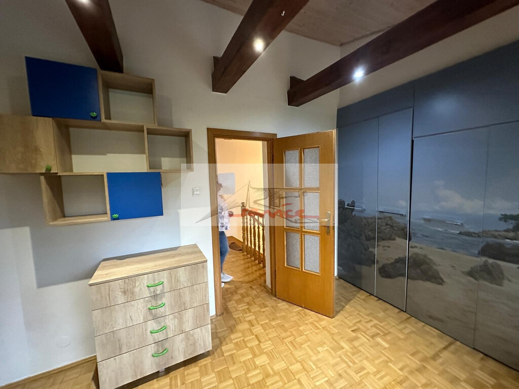 Pierwsze piętro nowoczesna i praktyczna kuchnia z jadalnią, salon z wyjściem na duży balkon (może być również wykorzystany jako dodatkowa sypialnia), łazienka z kabiną prysznicową i WC. Drugie piętro 3 sypialnie, w tym jedna z wyjściem na balkon, łazienka z wanną, przedpokój z szafą.