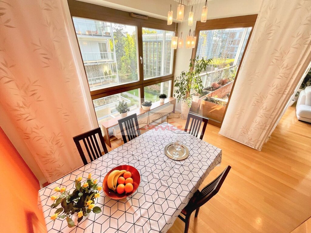 Prestiżowa lokalizacja na Mokotowie w otoczeniu Parków, zieleni, Pola Mokotowskiego a jednocześnie z dobrą komunikacją, restauracje, kawiarenki, szkoły. Dobrze zlokalizowana do centrum i na lotnisko. Projekt osiedla Jems Architekci doskonale pozwala zamieszkać i cieszyć się otoczeniem. Apartament jest umeblowany i z miejscem postojowym! Apartament znajduje się na trzecim piętrze budynku i składa się z przestronnego salonu z wyjściem na balkon, kuchni, jadalni, trzech sypialni z balkonami. W apartamencie znajdują się dwie łazienki oraz mała pralnia. W przestronnym holu wejściowym usytuowano szafy i komody w zabudowie. Jest to elegancki, ponadczasowy styl dla każdego. Na podłodze znajduje się elegancka deska z czerwonego dębu, a w kuchni wyjątkowe blaty z czarnego granitu oraz komplet urządzeń AGD. Zainstalowana klimatyzacja podnosi wygodę i komfort użytkowania a biokominek oraz oświetlenie zaprojektowane przez pracownię szkła artystycznego tworzy wyjątkowy nastrój. W pięciokondygnacyjnym budynku znajdują się apartamenty o zróżnicowanych powierzchniach z recepcją przy wejściu głównym i podziemnym garażem oraz pomieszczeniami na rowery. Obiekt jest monitorowany całodobowo. W bezpośrednim sąsiedztwie znajduje się Thames British School (Mokotow Campus) oraz przedszkole, żłobek, przychodnia lekarska, stomatolog, SPA, sklepy, usługi. Apartament posiada przypisane miejsce parkingowe w garażu podziemnym. Koszty mediów są naliczane na podstawie faktycznego zużycia i nie są zawarte w czynszu. Wymagana jest kaucja w wysokości dwukrotności miesięcznego kosztu najmu. Prezentacja nieruchomości wyłącznie przez Art-Service Real Estate Strategy Nieruchomości zapraszam.