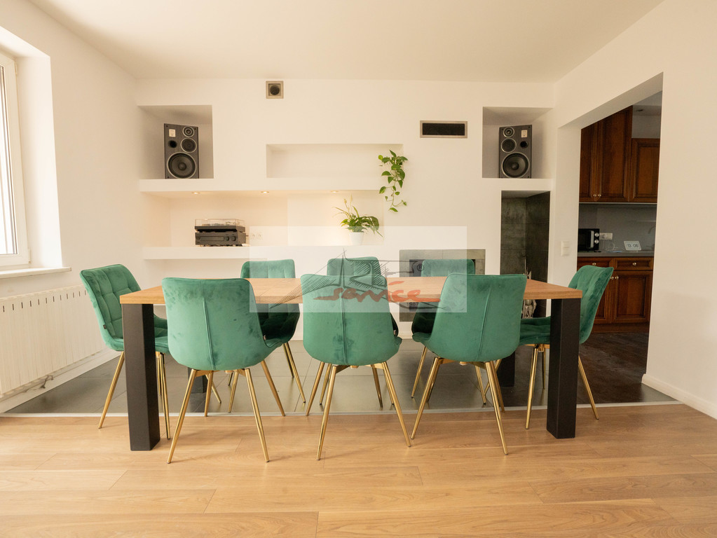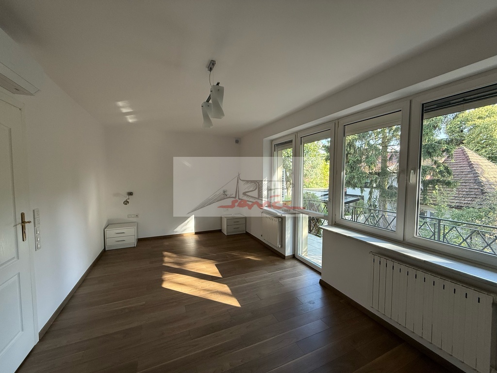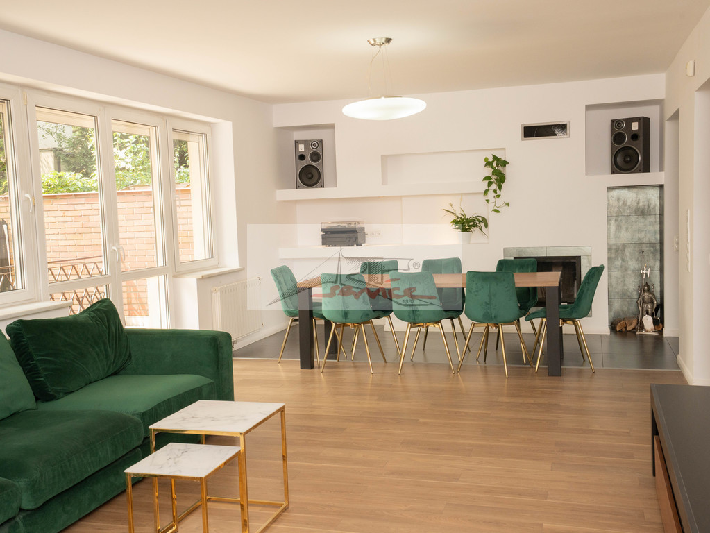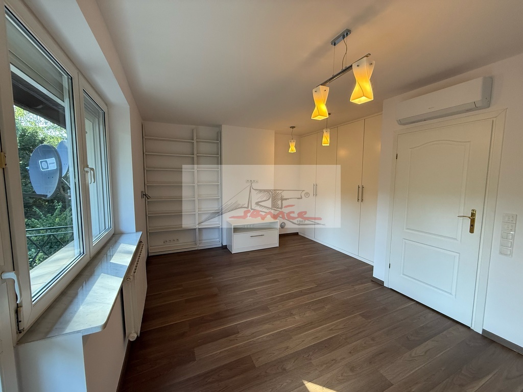 Piękna lokalizacja z widokiem na Park. Blisko centrum handlowe Sadyba Beat Mall, dobra komunikacja, 6km do centrum. Doskonały do zamieszkania i rekreacji, blisko jeziorka i plaży oraz ośrodka tenisowego. Nowoczesny dom, elegancko wykończony. Duży salon z kominkiem wyjście do ogrodu. Trzy piętra i obszerna piwnica, trzy łazienki i WC. Centralnie sterowane rolety i ogrzewanie. Nowa sauna i klimatyzacja (7 jednostek), kominek, garaż, pianino, woda pitna z kranu. Garaż plus miejsca parkingowe na podjeździe.