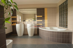 Piętro dwa gabinety, dwie osobno klimatyzowane sypialnie (większa z balkonem i szafą wnękową), przestronna łazienka z wanną i prysznicem.