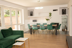 Piękna lokalizacja z widokiem na Park. Blisko centrum handlowe Sadyba Beat Mall, dobra komunikacja, 6km do centrum. Doskonały do zamieszkania i rekreacji, blisko jeziorka i plaży oraz ośrodka tenisowego. Nowoczesny dom, elegancko wykończony. Duży salon z kominkiem wyjście do ogrodu. Trzy piętra i obszerna piwnica, trzy łazienki i WC. Centralnie sterowane rolety i ogrzewanie. Nowa sauna i klimatyzacja (7 jednostek), kominek, garaż, pianino, woda pitna z kranu. Garaż plus miejsca parkingowe na podjeździe.