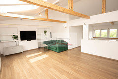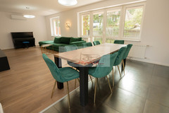 Poddasze otwarty salon gier / kino domowe z dźwiękiem 5.1, dwie osobno klimatyzowane sypialnie, przestronna łazienka z wanną, prysznicem i dwoma umywalkami.