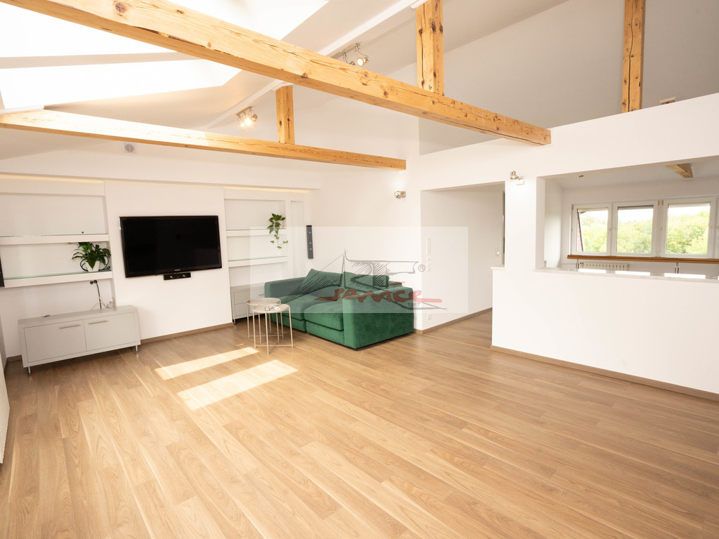 Poddasze otwarty salon gier / kino domowe z dźwiękiem 5.1, dwie osobno klimatyzowane sypialnie, przestronna łazienka z wanną, prysznicem i dwoma umywalkami.