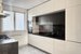 Parter - przedpokój z przeszklonymi elementami, - garderoba, - kuchnia z pełnym wyposażeniem (zmywarka, lodówka, piekarnik, mikrofala) otwarta na jadalnię i salon z wyjściem do ogrodu, - dodatkowy pokój/gabinet z wyjściem do ogrodu, - garaż jednostanowiskowy.