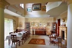Prestiżowa lokalizacja w Konstancinie, piękna rezydencja gotowa do zamieszkania. W 2014r i w 2022r. remont, nowe tarasy. Pięknie położony dom zaprojektowany przez Architekta, przestronne wnętrza, wysokie, cały doświetlony - wysokie okna. Doskonały do wypoczynku. Parter salon 76m2 wyjście na taras i do ogrodu, gabinet, wiatrołap, hall, WC, kuchnia widna z nowoczesnym AGD, garderoba, kotłownia, garaż na 2 samochody. Piętro hall z antresolą, trzy sypialnie, garderoba, łazienka, gabinet, pralnia, salon. Standard wykończenia Ściany - gładź gipsowa, tapety, glazura Podłogi - parkiet, terakota Schody - drewniane Okna - drewniane-mahoniowe Parapety - drewniane Drzwi zewnętrzne - antywłamaniowe, drewniane-mahoniowe. Wyposażenie oferowane w cenie do uzgodnienia. Do budynku przynależy garaż, taras, ogród, dodatkowy ładny dom dla gości. Cena do negocjacji. Prezentacja nieruchomości wyłącznie przez Art-Service Real Estate nieruchomości zapraszam.
