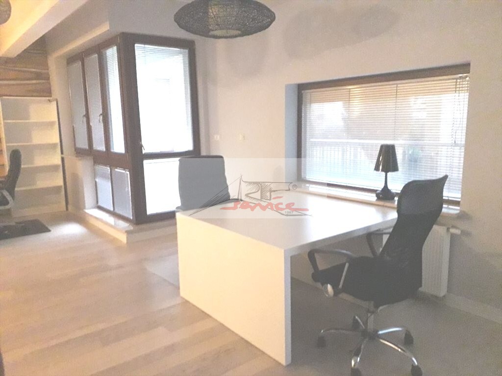 Doskonała lokalizacja w centrum Mokotowa z dobrą komunikacją, metro Wilanowska. Nowy budynek z windą, domofon. Lokal na parterze na cele biurowe. W sąsiedztwie znajdą Państwo ambasady i luksusowe wille. Pracownicy z pewnością będą zadowoleni z lokalizacji, przez łatwy dostęp do autobusów, tramwajów oraz 2 stacji metra (3 minuty spacerkiem). Lokal urządzony został na własne cele w wysokim standardzie. Może w nim pracować do 18-20 osób. Lokal jest w pełni urządzony - możemy jednak część mebli usunąć lub zamienić. W skład lokalu wchodzą 1. Open Space 8-10(12) osób, 2. Mały Gabinet 2 osoby, 3. Duży Gabinet 4 osoby, 4. Pokój Konferencyjny lub Gabinet (4 osoby), 5. Korytarz z wnęką recepcyjną (1 osoba), 6. 2 łazienki (w jednej znajduje się prysznic), 7. Kuchnia z wnęką jadalnianą, 8. Garderoba, 9. Pomieszczenie typu pakamera na dokumenty