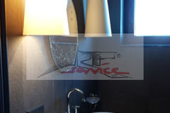 umeblowanie kuchni duże piękne akwarium, łazienka z prysznicem, schowek-przechowalnia. Z salonu wyjście na przestronne, ogrodzone, zaciszne, otoczone zielenią patio. Na 1 piętrze znajdują się 3 sypialnie - jedna z własną łazienką z wanną, i 1 gabinet do pracy, 1 łazienka, sauna, pomieszczenie na pralkę. Z dwóch pokoi wyjście na taras. Na 2 piętrze znajduje się 1 pokój-salon z wyjściem na taras oraz 1 łazienka. Dom wykończony z dużą precyzją, z materiałów wysokiej jakości, tworzy ciekawy klimat. Do domu przynależy garaż na 2 samochody. Domofon, alarm,