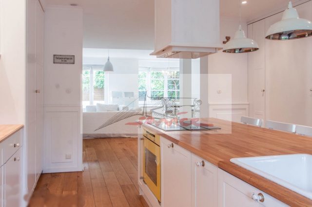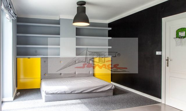 Doskonała lokalizacja w cichej, willowej części Wilanowa, to część która pozwoli w ciszy i spokoju odpocząć od zgiełku miasta, a jednocześnie zapewnia łatwy dojazd do centrum i dostęp do pełnej infrastruktury miejskiej. Segment wnętrze nawiązuje kolorem i wykończeniem do stylu Hampton. Już od wejścia wita nas serce domu, czyli kuchnia z dużą i funkcjonalna wyspa. Prawa ściana to ciąg szaf z wejściem do garażu, który w chwili obecnej pełni role studia nagrań (wnętrze jest całkowicie wyciszone, może pełnić funkcję ustronnego gabinetu). Z kuchni płynnie przechodzimy do salonu połączonego z jadalnią. Dominującym kolorem tej otwartej, ponad 70-cio metrowej przestrzeni jest biel, przełamana ciepłym odcieniem drewnianej podłogi. W salonie uwagę przykuwa kominek oraz duże i wygodne siedzisko pod oknem. Z salonu wyjście do w pełni zagospodarowanego ogródka, a właściwie dużego, przytulnego tarasu, który w okresie wiosenno-letnim znakomicie powiększa przestrzeń mieszkalna. Łazienka dla gości to jedyne pomieszczenie na dolnej kondygnacji gdzie dominuje czerń. Na pierwszym piętrze biel miesza się z innymi kolorami, miedzy innymi szarością. Główna sypialnia posiada własną łazienkę z wanną. Z korytarza wejście do łazienki z prysznicem oraz dwóch, dużych i ustawnych sypialni. Jedna z nich w chwili obecnej wykończona jest na potrzeby nastolatka. Posiada dużą, ponadwymiarową szafę, oraz wyjście na mały balkonik. Na kolejnej kondygnacji dominuje biel. Znajduje się tu duża, oświetlona oknami dachowymi pracownia, oraz dwie, widne, doskonale nadające się na kolejne pokoje, garderoby. Na tym samym piętrze znajduje się również przestronna pralnia z suszarnią. Na podjeździe zaparkują 3 samochody. Całe wnętrze to jasna i unikalna przestrzeń, połączenie stylu i funkcjonalności, zakładające maksimum wygody. Rozkład Parter salon, jadalnia, kuchnia, toaleta, studio nagrań (gabinet), taras