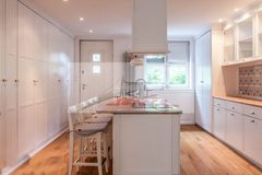 Doskonała lokalizacja w cichej, willowej części Wilanowa, to część która pozwoli w ciszy i spokoju odpocząć od zgiełku miasta, a jednocześnie zapewnia łatwy dojazd do centrum i dostęp do pełnej infrastruktury miejskiej. Segment wnętrze nawiązuje kolorem i wykończeniem do stylu Hampton. Już od wejścia wita nas serce domu, czyli kuchnia z dużą i funkcjonalna wyspa. Prawa ściana to ciąg szaf z wejściem do garażu, który w chwili obecnej pełni role studia nagrań (wnętrze jest całkowicie wyciszone, może pełnić funkcję ustronnego gabinetu). Z kuchni płynnie przechodzimy do salonu połączonego z jadalnią. Dominującym kolorem tej otwartej, ponad 70-cio metrowej przestrzeni jest biel, przełamana ciepłym odcieniem drewnianej podłogi. W salonie uwagę przykuwa kominek oraz duże i wygodne siedzisko pod oknem. Z salonu wyjście do w pełni zagospodarowanego ogródka, a właściwie dużego, przytulnego tarasu, który w okresie wiosenno-letnim znakomicie powiększa przestrzeń mieszkalna. Łazienka dla gości to jedyne pomieszczenie na dolnej kondygnacji gdzie dominuje czerń. Na pierwszym piętrze biel miesza się z innymi kolorami, miedzy innymi szarością. Główna sypialnia posiada własną łazienkę z wanną. Z korytarza wejście do łazienki z prysznicem oraz dwóch, dużych i ustawnych sypialni. Jedna z nich w chwili obecnej wykończona jest na potrzeby nastolatka. Posiada dużą, ponadwymiarową szafę, oraz wyjście na mały balkonik. Na kolejnej kondygnacji dominuje biel. Znajduje się tu duża, oświetlona oknami dachowymi pracownia, oraz dwie, widne, doskonale nadające się na kolejne pokoje, garderoby. Na tym samym piętrze znajduje się również przestronna pralnia z suszarnią. Na podjeździe zaparkują 3 samochody. Całe wnętrze to jasna i unikalna przestrzeń, połączenie stylu i funkcjonalności, zakładające maksimum wygody. Rozkład Parter salon, jadalnia, kuchnia, toaleta, studio nagrań (gabinet), taras